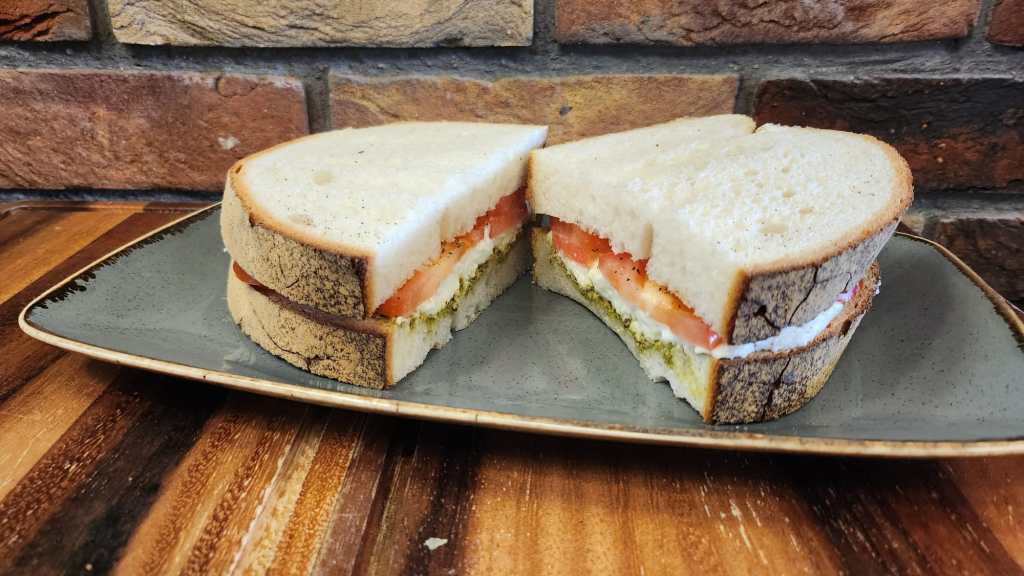 Cheese, Fresh Basil Pesto, Roasted Peppers, Lettuce, Rocket