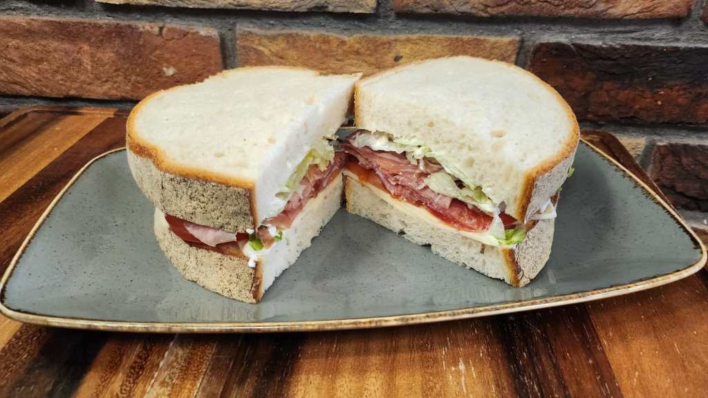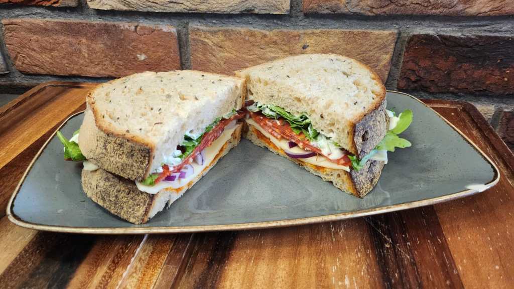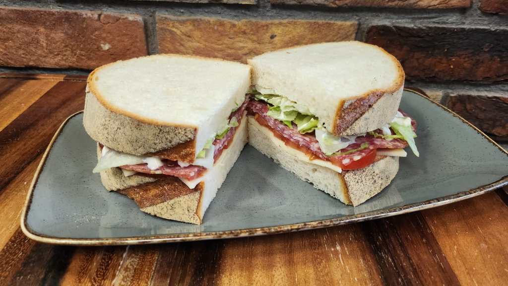 Milano Salami, Cheese, Gherkins, Roasted Peppers, Onion, Lettuce